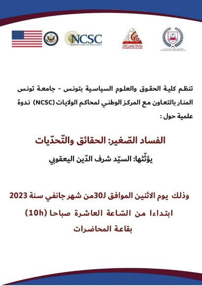 ندوة علمية حول الفساد الصغير "الحقائق والتحديات " بكلية الحقوق و العلوم السياسية بتونس